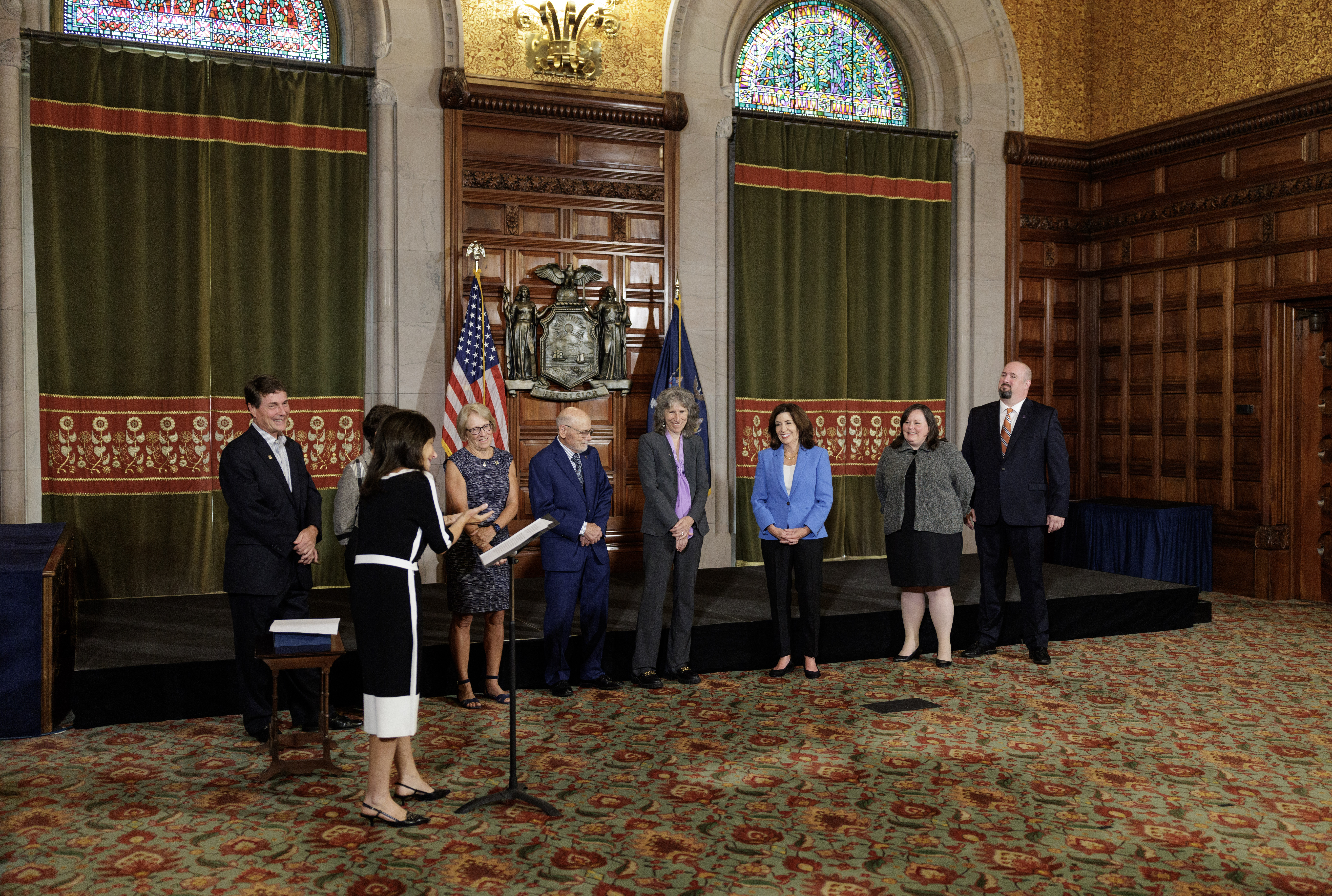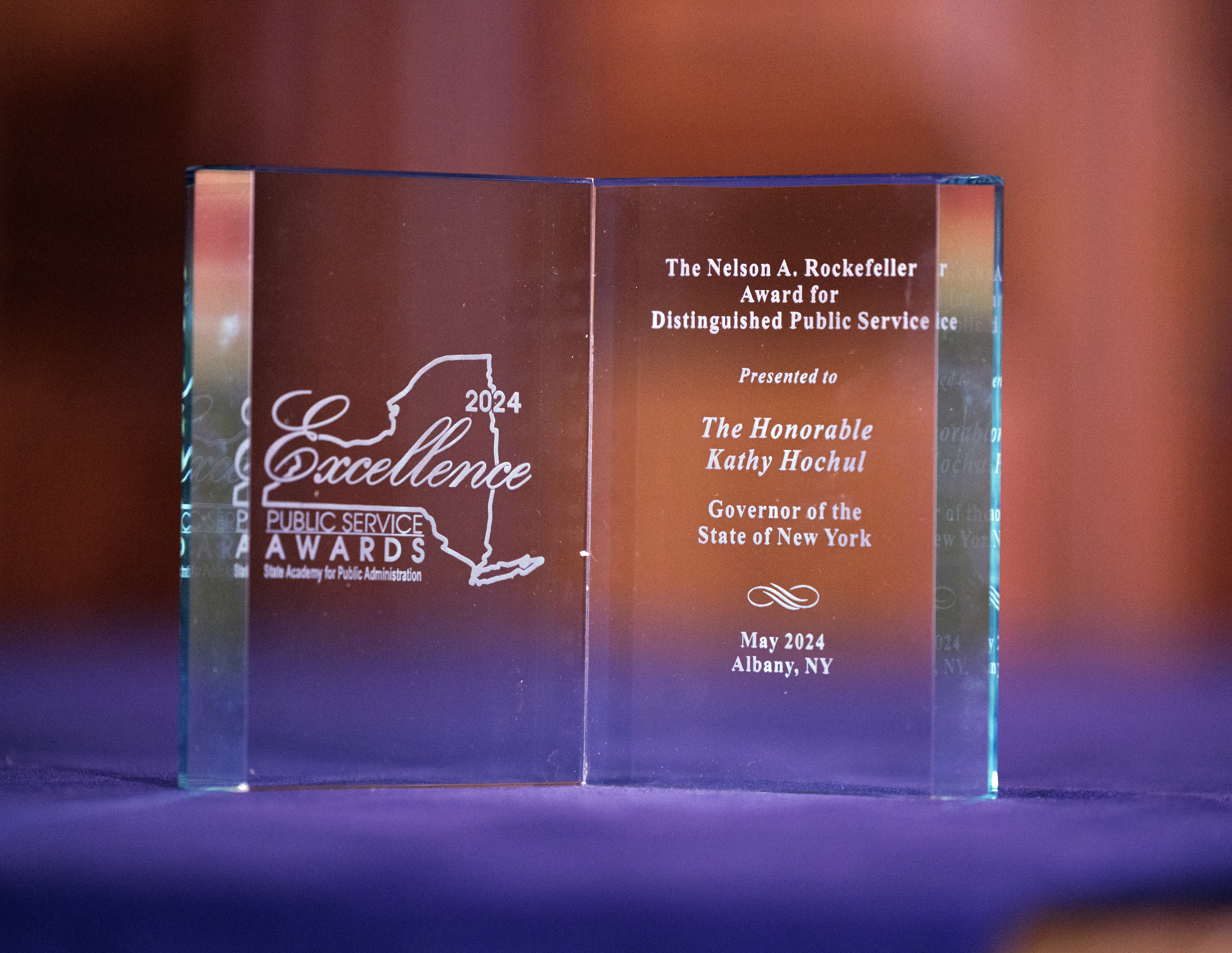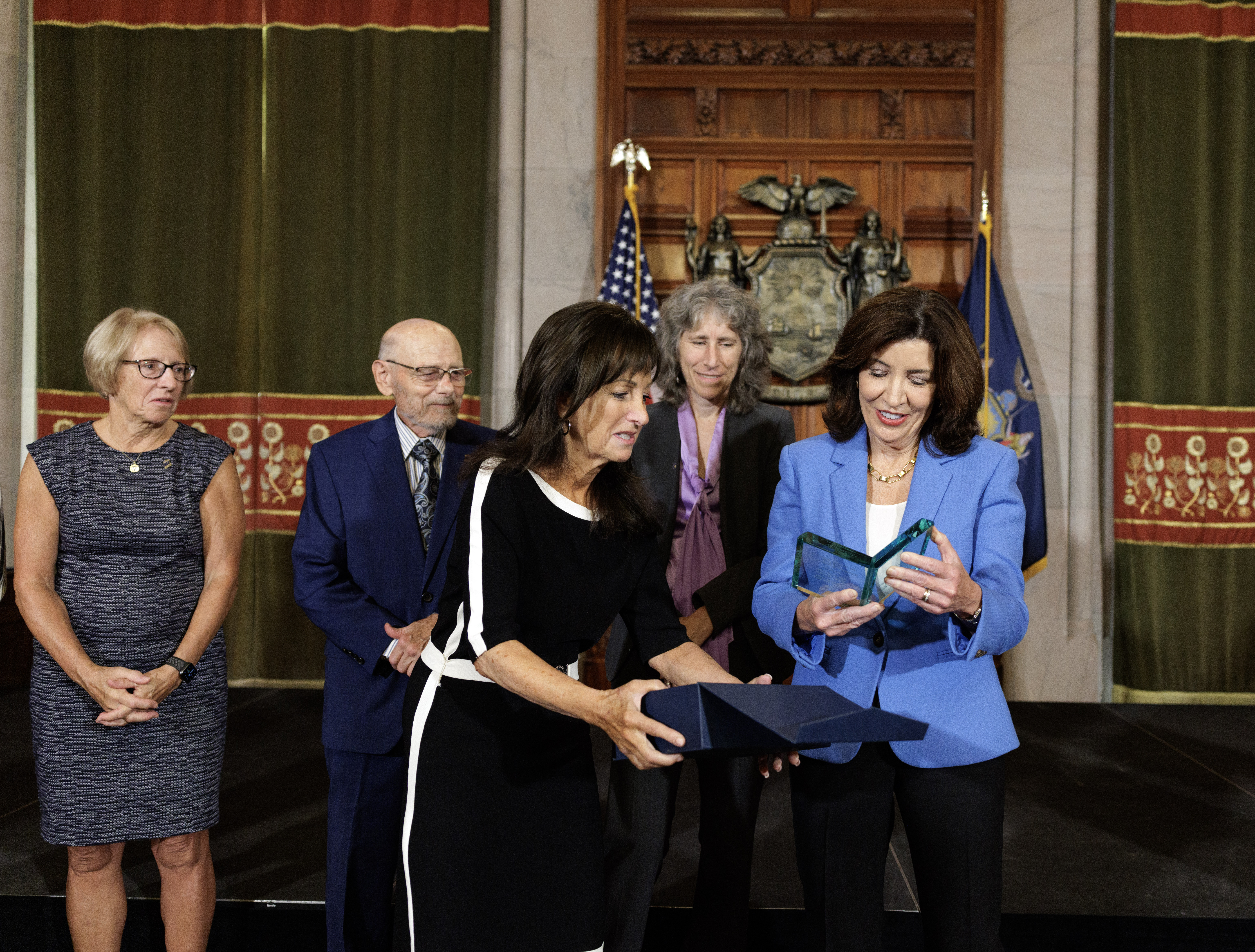 On August 26, 2024, the New York State Academy for Public Administration (SAPA) proudly presented the prestigious Nelson A. Rockefeller Award for Distinguished Public Service to Governor Kathy Hochul. The award ceremony took place in the historic Red Room of the New York State Capitol, where Governor Hochul was honored for her exceptional contributions to public service.