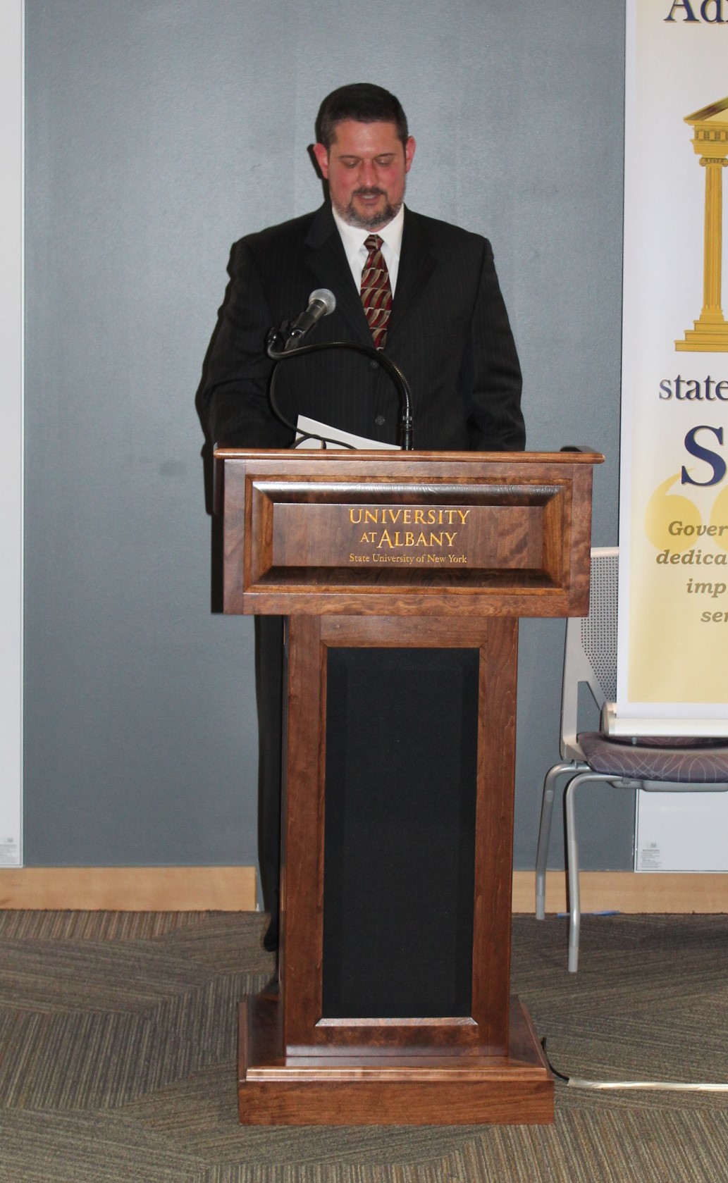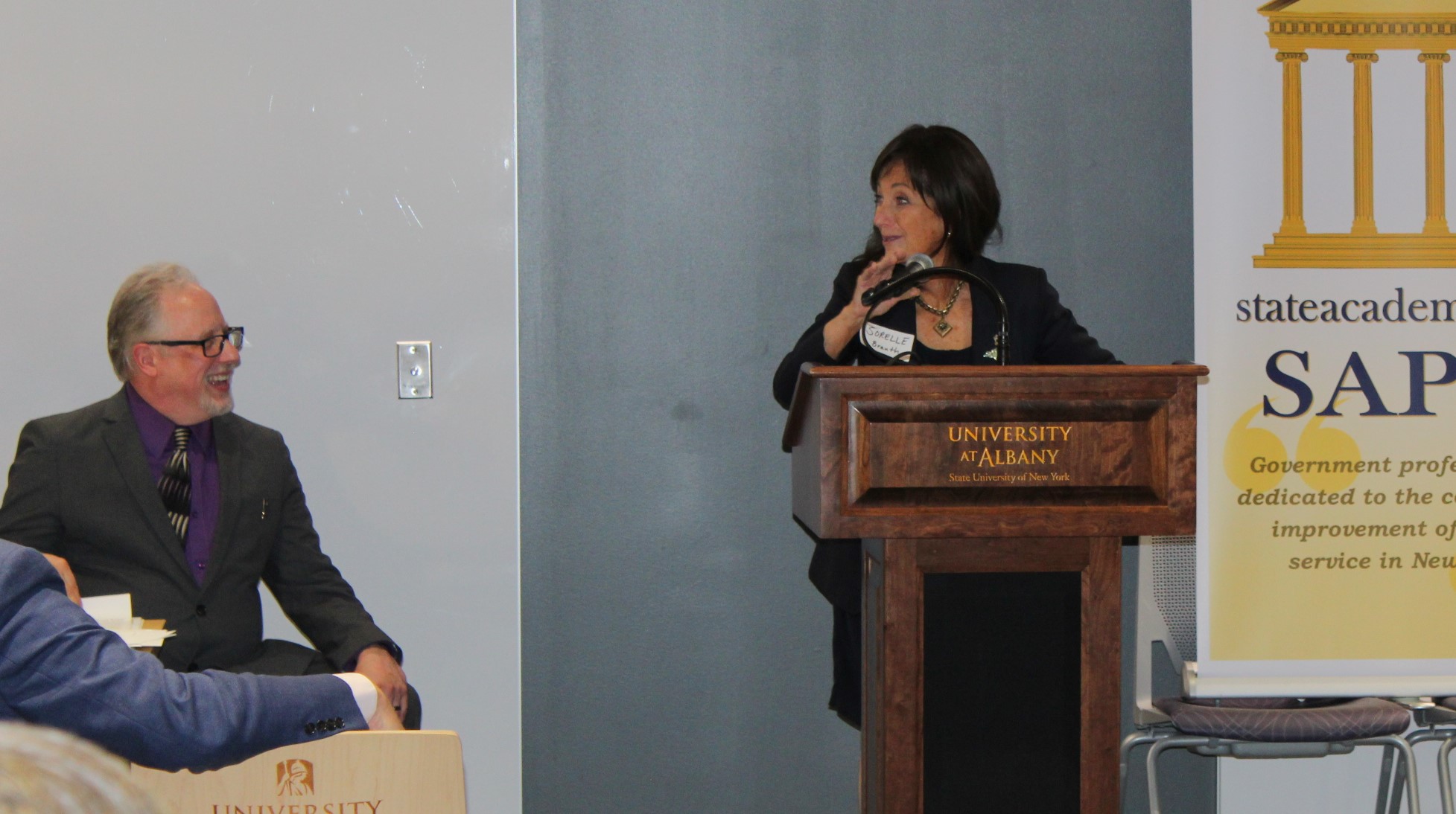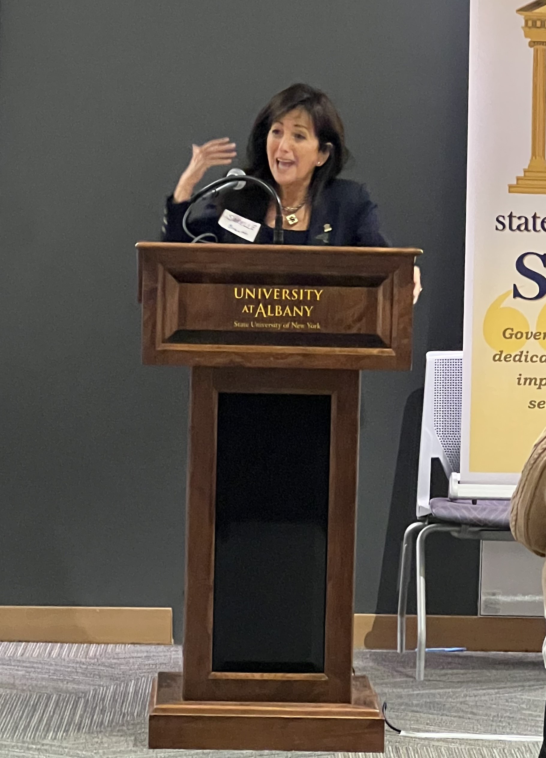 Chair of the State Academy’s Rockefeller Awards Committee, Sorelle Brauth, was honored to present the 2025 Rockefeller Award. Comptroller DiNapoli was unable to attend the award ceremony, but graciously sent an acceptance video. Jason Windsor, Comptroller DiNapoli’s Deputy Comptroller for Finance & Administration, accepted the award on his behalf.