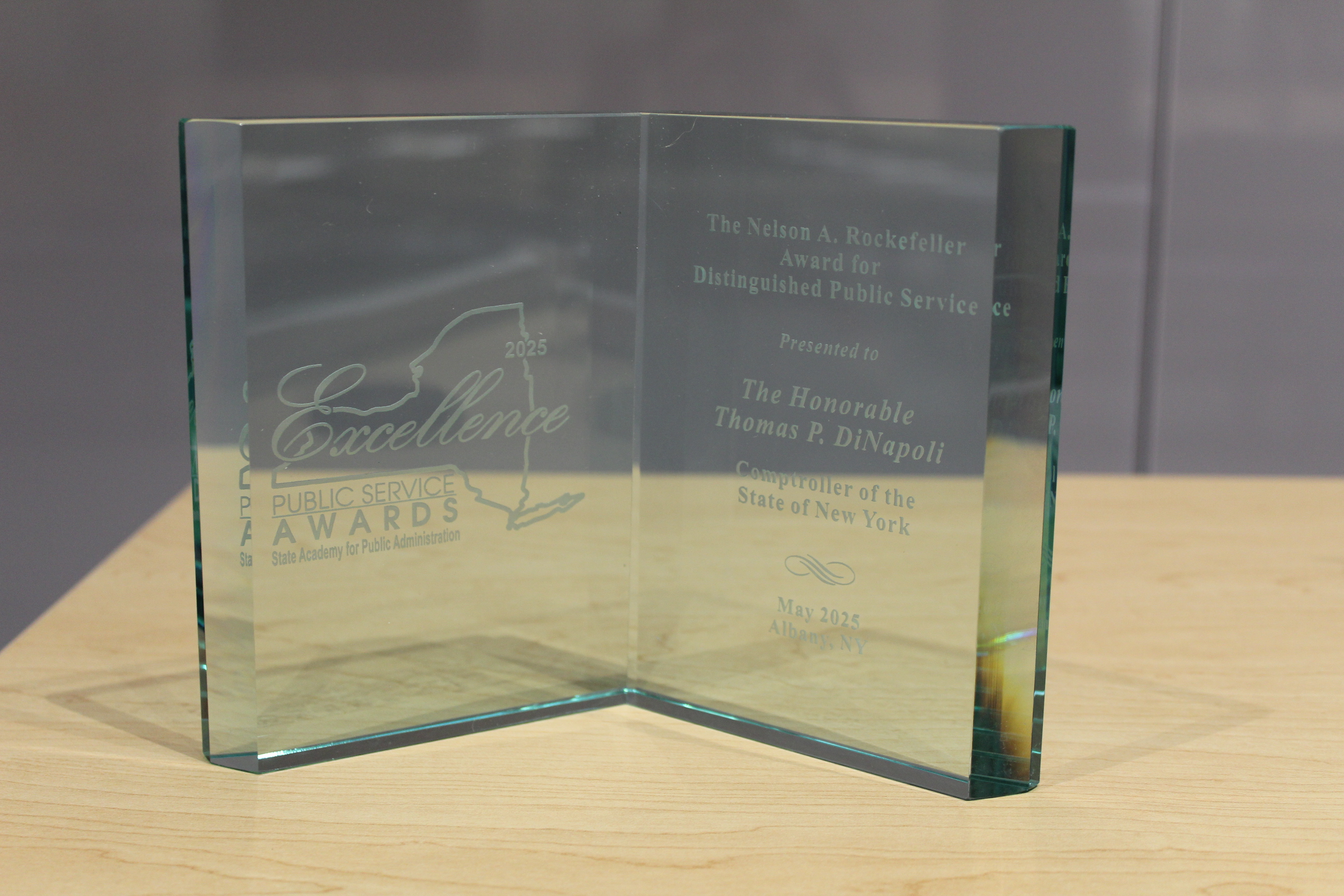Congratulations to New York State Comptroller Thomas P. DiNapoli, this year’s recipient of the Rockefeller Award. Comptroller DiNapoli joins a long and distinguished list of recipients, including previous NYS Comptroller H. Carl McCall, and the first ever recipient of the Rockefeller Award in 1980, Comptroller Arthur Levitt.